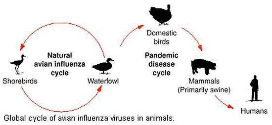• يصيب الطيور بالدرجة الأولى وينتقل منه إلى باقي الحيوانات والثدييات والإنسان.
